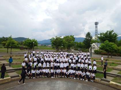 お昼ご飯を食べ終わり、もう一度記念写真を撮りました。今回は7期生全員でフィルムに収まります。