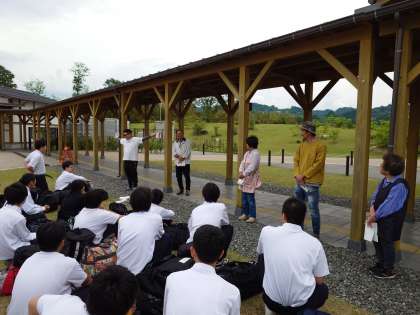 今日・明日とお世話になる民家の方々にご挨拶。「民泊を楽しみにしてきました。よろしくお願いします!」