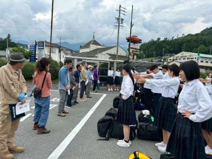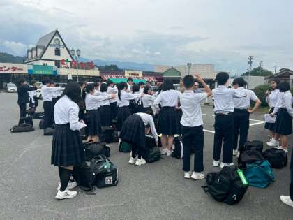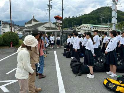 4号車のバスが中川村に到着しました。民家の方が待ってくださる中、これから入村式にのぞみます。