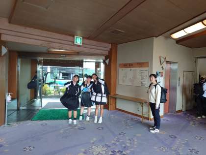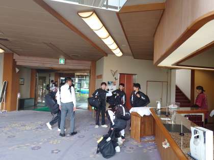 バスが次々と旅館に到着しています。これからお昼ご飯をいただきます。