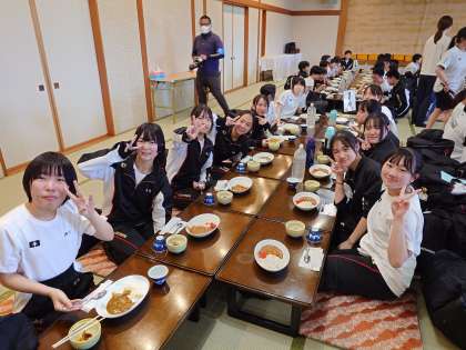 給食でよくいただくメニューですが、南信州の旅先でいただくカレーライスは一味違いますね。