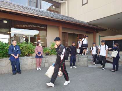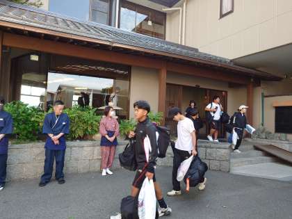 旅館の方々にお礼をお伝えし、これから一路ひこねスカイアドベンチャーをめざします。