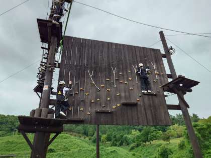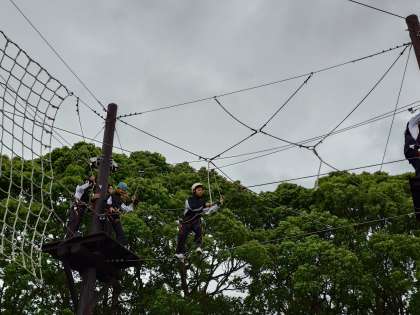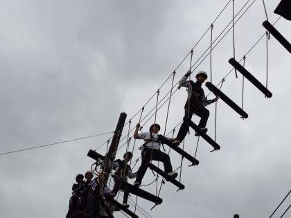 ハーネスを着用しているので安全なのですが、高い場所でのアスレチックはどうしても足がすくみます。