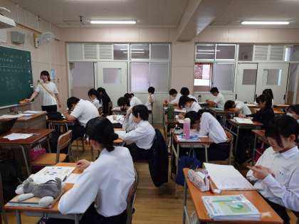 2年生数学の授業で文章題を解いています。「バスケの試合で3点シュートと2点シュートを合計9本決め、得点が21点あったそうです。それぞれのシュートの本数は何本ずつありましたか?」3点シュートを x 、2点シュートを y とする2次方程式を使って解くそうです。皆さん上手く解けましたか?
