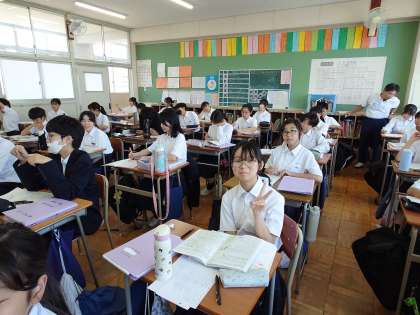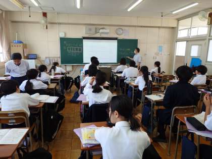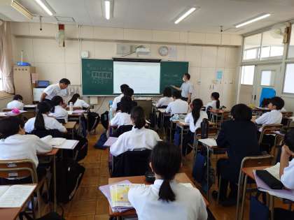 1年生数学の授業で文字式の学習が始まりました。「1冊90円のノートを a 冊買ったときの値段」を文字式で答える問題に取り組みます。中学校では文字を使った計算式がどんどん出てくるので、今のうちにマスターしましょう。