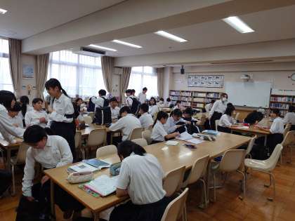 放課後の図書室で学習会が行われています。学校元気アップ事業の一環として、コーディネーターさんが定期テストに向けた学習をサポートしてくださいます。テストに関連するプリントもあるようです。参加した皆さん、有効に活用してくださいね。