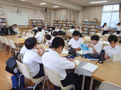 放課後の図書室でテスト前の「自主学習会」が開かれています。今日もテスト勉強に励もうと、希望者が集まっています。周りに頑張っている仲間がいると、自分もスイッチが入りますね。互いに励まし合って、より良い成果を上げてくださいね。