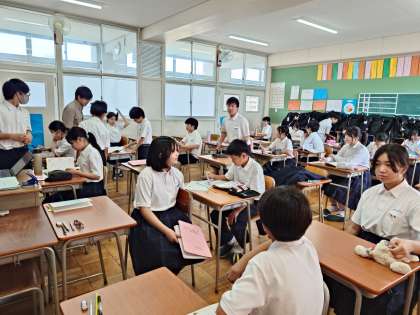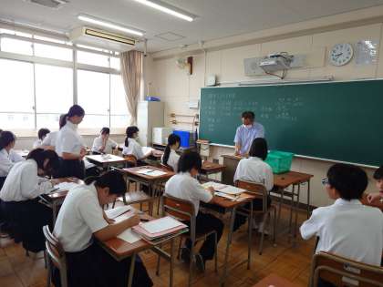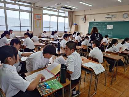 1年生の皆さんには中学校で初めての定期テストになりますね。皆さん少しドキドキしながら、テスト開始前の時間を過ごしています。1時間目は英語のテスト。もう一度、プリントなどに目を通しておきましょう。