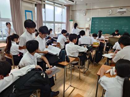 2年生の教室でもテスト開始前の時間を有効に活用しています。1時間目は英語のテスト。授業で「ワークからたくさん出題します」と、先生がおっしゃっていましたね。皆さん、ワークの確認を入念に行いましょう。