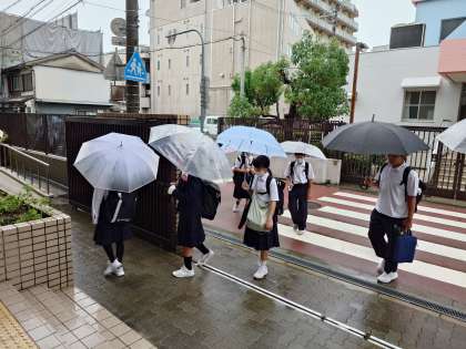 シトシトと細かな雨が降る朝。皆さん傘を手に登校してきました。先週の夏空と変わって、梅雨空が戻ってきた模様。蒸し暑さは相変わらずなので、こまめな水分補給等、くれぐれも体調には気をつけてくださいね。