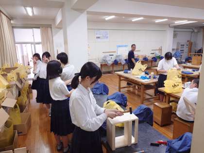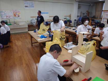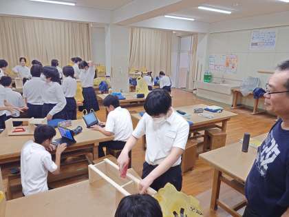 2年生が製作してきた「木製ラック」が次々と完成しています。1年生の頃からコツコツと取り組んできました。今日は仕上げのヤスリがけや細部の調整を行う人が多い模様。早く持ち帰って、お家の方に見ていただきたいですね。