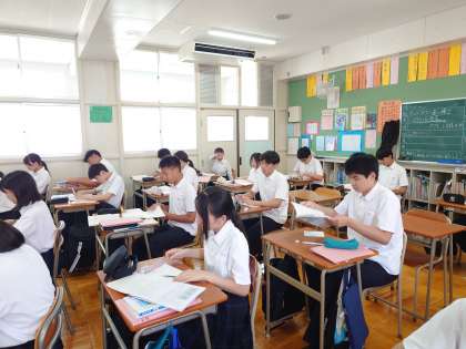 3年生国語科で学習している「フロン規制の物語」。地球環境に大きな影響を及ぼす恐れがあるフロン。フロンの規制についてさまざまな議論が交わされた経緯が述べられた論説文です。内容を読み解きながら、作者の主張が何かを追究しましょう。
