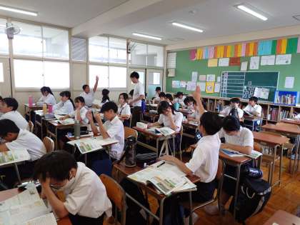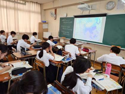 1年生社会科の授業で「アジアの農業」を教わります。モンスーン(季節風)の影響で降水量が多い東アジア〜南アジアでは稲作がさかんです。降水量が少ない中国北部では小麦やトウモロコシなどの畑作が、乾燥した中央アジアでは牧畜がさかんです。降水量(気候)の違いで農業もさまざま変化するようです。