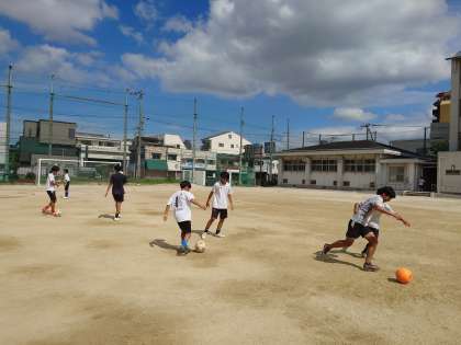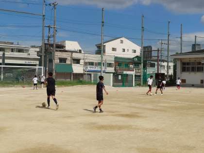 夏休みに入りました。運動場ではサッカー部の皆さんが練習に励んでいます。ボールコントロールの精度を高められるよう、ペアやブループでのトレーニングに力が入ります。明日の試合で練習の成果が出ることを願っています!