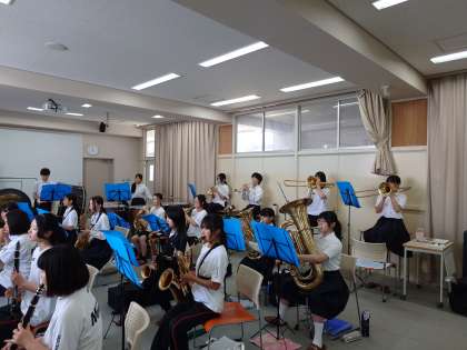 吹奏楽部の皆さんが熱心に練習しています。明後日の日曜日に開催される「吹奏楽コンクール」の地区大会で演奏する曲に磨きをかけています。吹奏楽部にとっては年に1度の大きなコンクール。皆さんがめざす音楽を多くの方々に届けてくださいね。