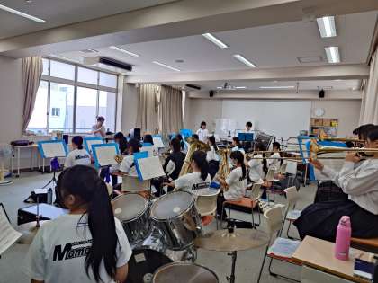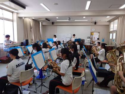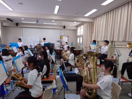 校舎4階から吹奏楽部の演奏が聞こえてきました。明日、興国高校で開催される「4ブロック演奏会」にむけた最終調整に取り組んでいるとのこと。JPOPメドレーなど皆さんがよく知っている曲を演奏するようです。多くの観客の方々に楽しんでいただけるステージになりそうです。