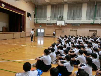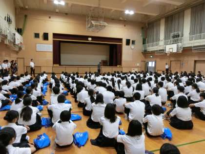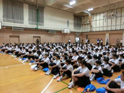 始業式では先生方や生徒会役員の皆さんからお話がありました。2学期は体育大会や文化発表会などの行事が控えています。クラスや学年の仲間が気持ちを一つにして、思い出に残る素晴らしい行事にしていきましょう。