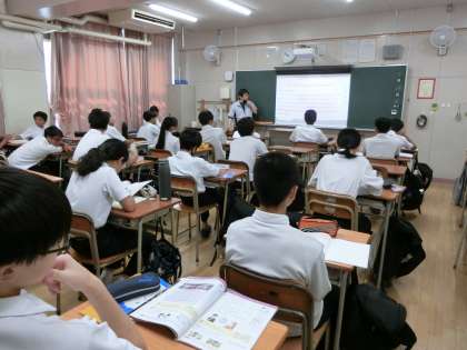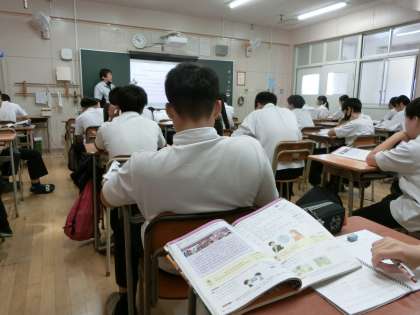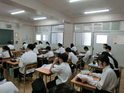 2年生英語科で「 must 」を使った英文を学習します。「 must + 動詞の原形」で、「〜しなければならない」という意味になるそうです。「have to 〜」も同じ意味でつかわれますが、mustの方がより強い意味を持つそうですよ。