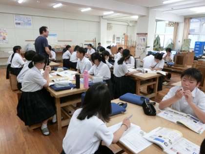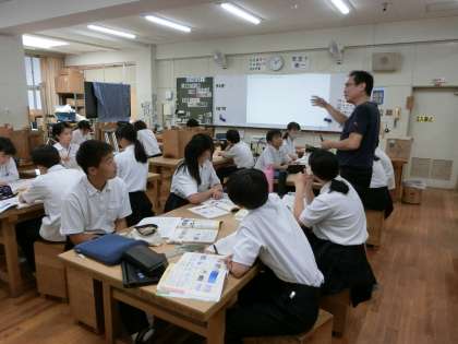 1年生技術科でいろいろなモノの素材(プラスティック)について教わります。石油が原料のプラスティックは軽くて耐久性があり加工しやすい便利な素材。しかし自然環境では分解されず環境汚染の原因になっています。近年、プラスティックを分解する生物の研究が進んでいるそうですよ。