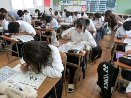 1年生美術科で「レタリング」の実習が行われています。レタリング字典を見ながら、明朝体やゴシック体の特徴を学んでいきます。ある程度コツをつかめたら、自分の名前のレタリングにチャレンジします。皆さん上手く描くことが出来るでしょうか?