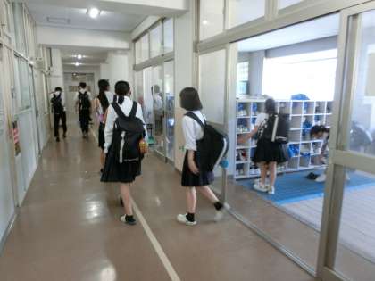 徐々に雲が消え、澄んだ青空が広がる朝。今朝も皆さん元気に登校してきました。明日は3年生第2回実力テストを実施します。夏休みに培った学習の成果が試されるテストです。これまでの努力が存分に発揮されることを願っています!