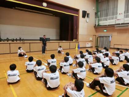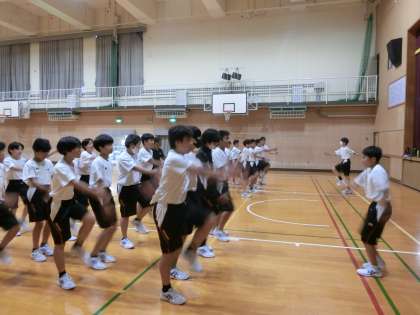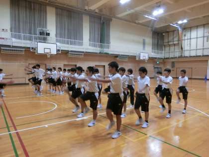 1年生男子の皆さんが体育大会の入場行進の練習に取り組んでいます。当日には各クラスの行進が審査されるので、どのクラスも練習に力が入ります。先生から今年の審査ポイントが発表されました。「元気よく、美しく」を意識して、行進のレベルアップをはかりましょう。