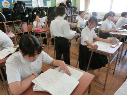今日・明日の2日間、中間テストを実施します。テスト開始前の1年生の居室では、皆さん直前の勉強に取り組んでいます。テストにむけて教室内が良い雰囲気になっていて感心します。各教科のテストを集中して頑張ってくださいね。