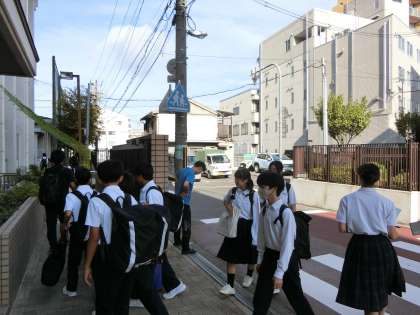 雲間から陽の光が差し、蒸し暑くなりそうな気配を感じる朝。今日も皆さん元気に登校してきました。後期生徒会役員の立候補者受付は今日が最終日。桃中のために頑張ってくれる仲間を募っています。みんなで生徒会活動を盛り上げてくださいね。