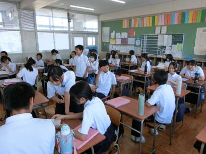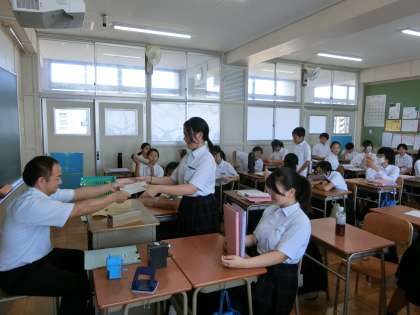 火・水曜日に行われた「2学期中間テスト」の結果が返ってきました。1年生の教室では、数学のテストを返却中。先生から一人ずつ、解答用紙が手渡されます。名前を呼ばれるまでの時間がドキドキしますね。満足できる結果になっていると良いですね。