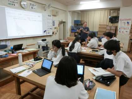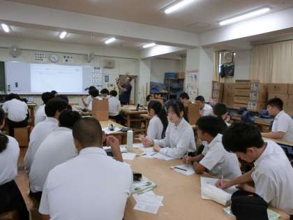 3年生技術科で「発電の仕組みと課題」について考えます。私たちの生活に欠かせない電気を起こす発電(所)には、火力や水力、原子力に風力などさまざまな種類があります。日本では火力の依存度が6〜70%あり、再生可能エネルギーの利用はまだまだ少ないのが現状。二酸化炭素の発生をおさえる環境に優しいエネルギーの活用の推進が課題ですね。