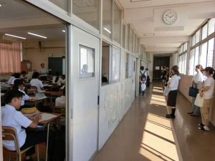現在、各学年で授業参観を実施しています。保護者の方々が次々に来校され、授業のようすを参観してくださっています。いつもと異なる雰囲気に、生徒の皆さんも少し落ち着かない様子。頑張っている姿を見ていただけると良いですね。