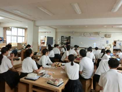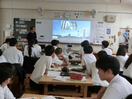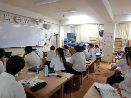 3年生技術科で「エネルギー変換」について教わります。私たちはふだんの生活の中で、いろんなエネルギー変換を行っているとのこと。例えばLED照明は電気エネルギーを光エネルギーに変換したもの、エアコンは電気エネルギーを熱エネルギーに変換したものになります。気付かないうちに、いろんなエネルギーを利用しているのですね。