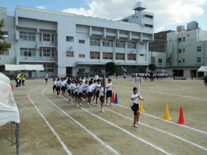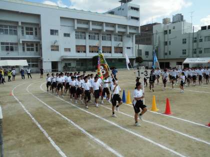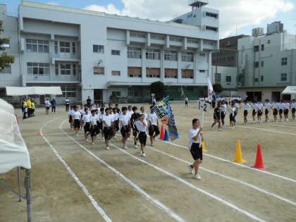 体育大会予行 1年行進です