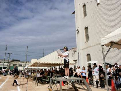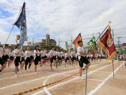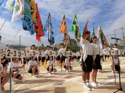 入場行進が終わり、開会式が始まります。国旗の掲揚・大阪市歌の斉唱に続いて、3年生の体育委員さんが元気よく選手宣誓を行ってくれました。お互いに正々堂々と戦いあい、優勝をめざして頑張ってください!