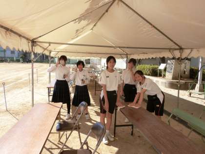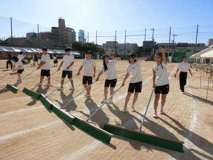 着々と会場準備が進んでいます。東校舎付近には得点板が掲示され、自ずと体育大会の雰囲気が高まってきました。本部席のイスや机を雑巾がけしたり、トラックを整地したり、皆さん本当に活躍してくれています。明日の体育大会は9時15分からの入場行進で幕を開けます。生徒の皆さんは通常通り8時25分までに登校しましょう。