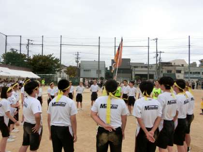 先生方を真ん中に据えて、クラスメイトみんなが一緒に肩を組んで、大声でエールを交わします。皆さんの心に残る温かな思い出になると良いですね。