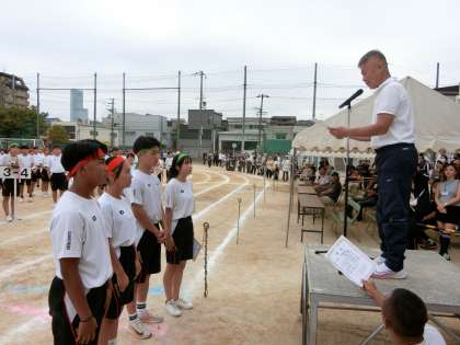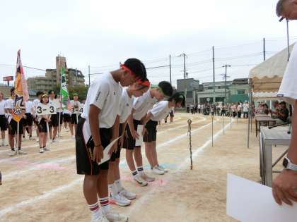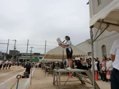 全ての競技が終了し閉会式が始まりました。まずは成績発表を行います。競技得点に加え、入場行進や学級旗の審査結果の発表もありました。勝ち負けはさておき、どのクラスも全力で取り組んだ体育大会でしたね。桃中生の頑張る姿がとても輝いていた1日になりました。