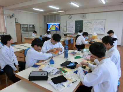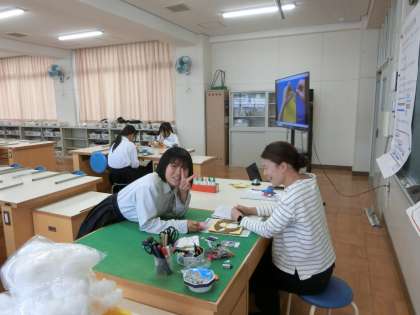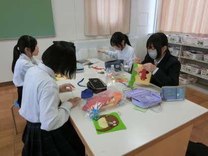 放課後の被服室に3年生が集まっています。家庭科で製作している「フエルト生地で作る幼児向けの絵本」。文化発表会に出展するので、最終仕上げを行っているとのこと。先生も付き添ってくださっているので、どしどし質問して完成をめざしましょう。