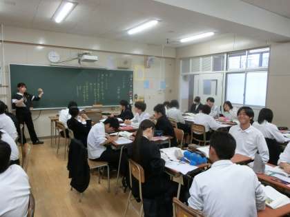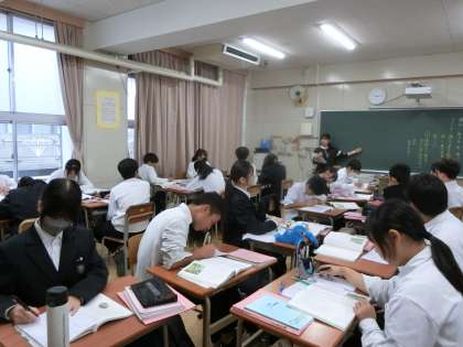2年生国語の授業で、小説家内海隆一郎の「小さな手袋」を鑑賞します。夫を亡くしたばかりのおばあさんと少女シオの交流を描いた心温まる物語。今日はグループになって登場人物の心情を読みとります。いろんな意見を交わしながらシホの思いを考えましょう。