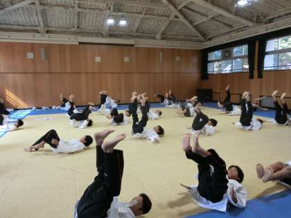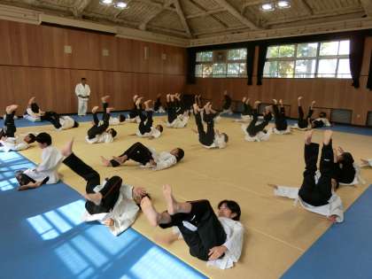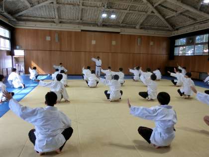 1年生男子体育で柔道の授業が行われています。今日は「受け身」の稽古に取り組みます。後ろ受け身や横受け身など、自分の身を守る基本的な動作を教わります。畳を叩く「パン!」という響きが気持ち良いですね。