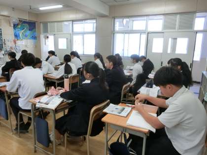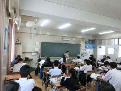 2年生理科の授業で「霧のできかた」を学習します。目には見えませんが、空気中には水蒸気が含まれているそうです。気温が下がると、空気中に含むことが出来る水蒸気の量が減り、水滴へと変化して霧ができます。今の季節、夜に地面が冷やされて「雲海」ができるのも、同じ仕組みだそうですよ。