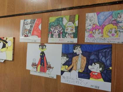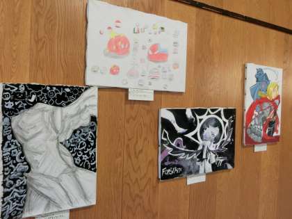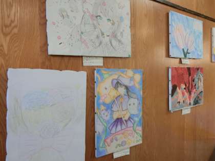 美術科の作品とともに、美術部の皆さんの作品が飾られています。部員みんなで協力して制作した作品や、部員それぞれが描いたパネル作品など、日頃の活動の成果を発表します。心を込めて作った作品の数々を、ぜひ味わってください。