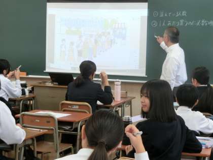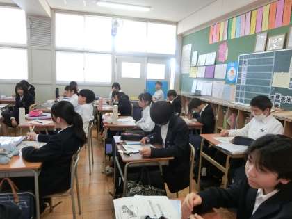 1年生数学の授業で「待ち時間を予想する」問題を解いています。自分の前にいる行列の人数と〇分後に自分の後ろに並んだ行列の人数がわかれば、待ち時間が予想できるとのこと。「リトルの法則(公式)」と呼ばれる計算式だそうですよ。