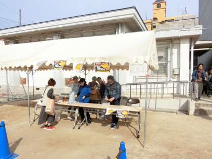 東桃谷地域の青少年指導員さんが「タコス」のお店を出してくださいました。メキシコを代表する料理です。サルサソースで味付けしたひき肉とトマト・レタス、チーズの相性が抜群です。皆さん、ぜひお味を試してくださいね。