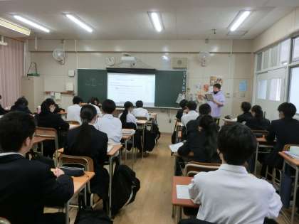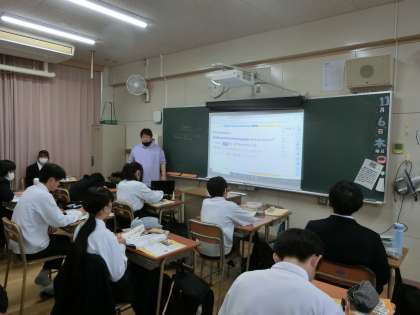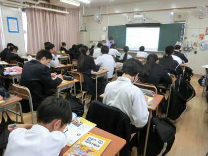 2年生英語の授業で「電車の乗り方」について学習します。電車に乗って目的地に行く場合の「電車に乗る」は「take a train」、実際に電車(車両)に乗る場合は「get on a train」と言うそうです。「〇〇までの行き方を教えてください」の場合は「take」を使いましょう。