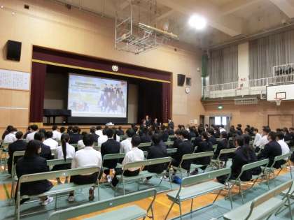 私立高校の先生に来ていただき、3年生対象に「面接の心得」を教わりました。いくつかの高校では、入学試験で面接を実施する学校があります。今日は、面接時の注意点や事前の心構えなど具体的に教わりました。3年生の皆さん、しっかりとおさらいしてくださいね。