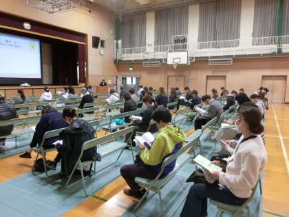 本日放課後、保護者の方々を対象に「第2回進路説明会」を行いました。進路指導主事より合否判定の仕組みや「オンライン出願」のあらまし、進路に関する今後のスケジュールなどを説明しました。来週から進路懇談が始まります。卒業後の進路について、担任の先生といろいろお話し合いください。
