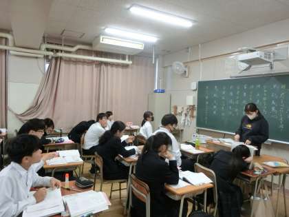 2年生国語の授業で杜甫の「春望」を鑑賞します。「春望」は8世紀の中国(唐)で活躍した詩人杜甫の詠んだ漢詩です。冒頭の「国破れて山河在り、城春にして草木深し」の句は特に有名です。まずはみんなで音読から学習し、内容を読み進めましょう。