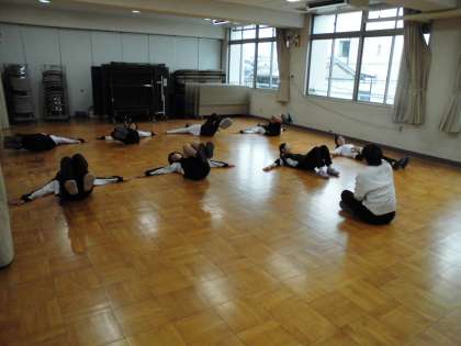 多目的室 スポーツトレーナートレーニング体験 足をつけずに左右に30回、できるかな?