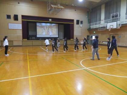 体育館 K‐POPダンス体験 先生も一緒にダンスに挑戦しています。